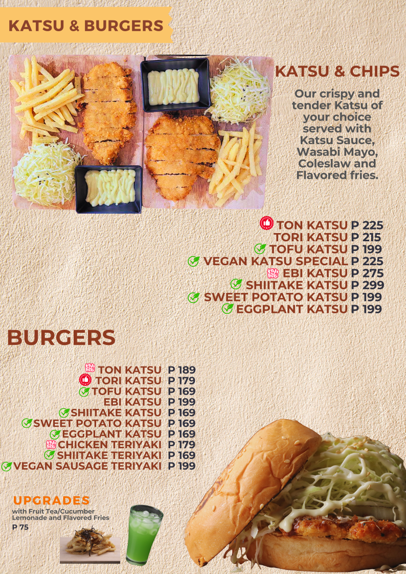 Katsu House Japanese Fusion Restaurant offers a menu that perfectly balances traditional Japanese flavors with modern twists, making it a standout destination in Taytay. Signature items like the Teriyaki Wrap deliver a satisfying blend of savory and slightly sweet notes, wrapped in a crisp yet tender exterior that highlights the care put into each dish. The Vegan Katsu Bento showcases the restaurant’s thoughtful approach to plant-based options, pairing perfectly seasoned vegetables with a harmonious assortment of sides that make it feel indulgent without being heavy. For sushi lovers, the Katsu Sushi Rolls are a must-try, combining delicate textures and fresh ingredients that elevate the standard sushi experience. The Kani Wrap adds another layer of creativity, blending creamy crab with flavorful sauces in a presentation that is both visually appealing and delicious. Overall, the menu at Katsu House is diverse yet cohesive, offering options that cater to both traditional palates and adventurous diners, all while maintaining consistent quality and attention to detail. The variety of dishes, from hearty bento boxes to inventive wraps and rolls, ensures that every visit can bring something new to explore, making it a reliable choice for anyone seeking a satisfying fusion of Japanese flavors in a welcoming setting.